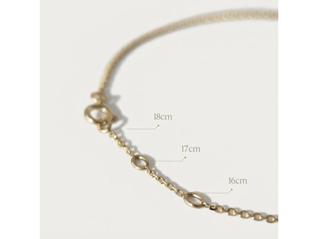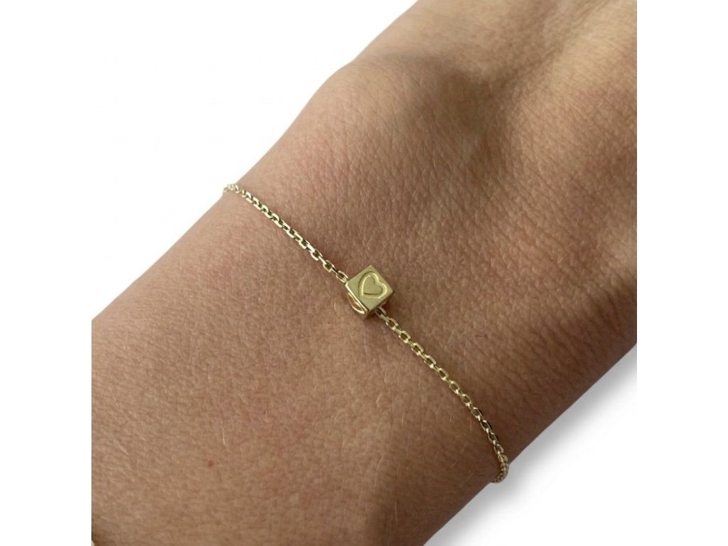 Elegantný náramok z 9-karátového zlata (375/1000). Navrhnutý s dôrazom na detail – tak, aby dokonale ladil s našimi zlatými kockami, no zároveň bol dostatočne jemný a elegantný na nosenie aj samostatne. Vďaka precíznemu spracovaniu je ideálnym základom pre tvorbu jedinečného šperku s osobným odkazom – alebo ako minimalistický doplnok ku každodennému outfitu.