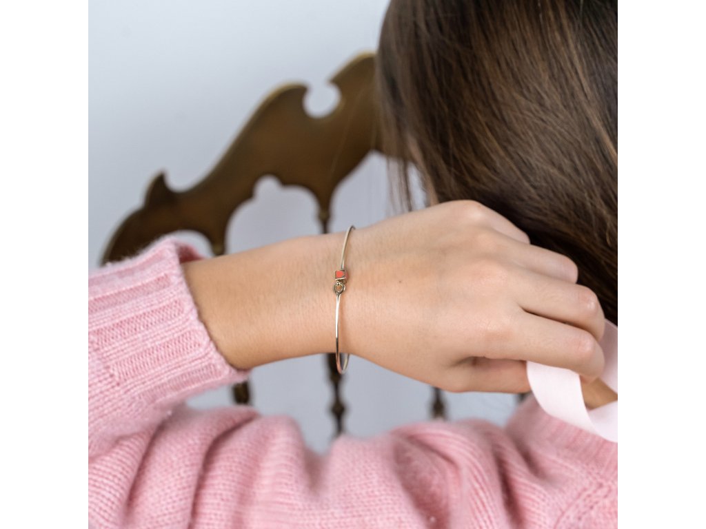 Jemná a elegantná kocka zo 9-karátového zlata (375/1000), ktorú zdobí výrazné červené srdiečko – symbol lásky, nežnosti a spojenia. Farebný enamel dodáva šperku hravý a súčasne sofistikovaný nádych.