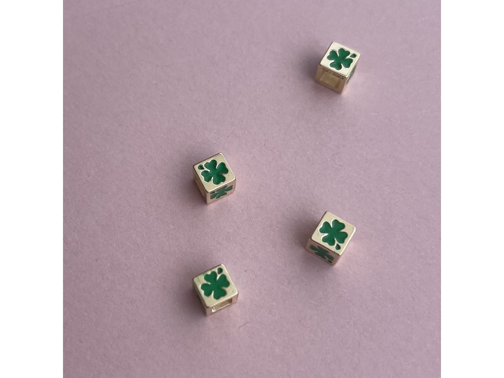 Kocka so symbolom štvorlístka, vyrobená z 9-karátového zlata (375/1000), prináša štipku šťastia do každodenného života. Farebný smalt zvýrazňuje jej hravý a pozitívny charakter. Je dokonalým doplnkom pre tých, ktorí veria na šťastie alebo chcú nosiť so sebou milý talizman v elegantnej forme.